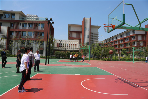 付校长热情地接待客人们,带领大家先后参观了校大门、礼贤广场、教学楼、墨池书院、运动场、学生公寓、餐饮中心等场所,并介绍学校情况。经过现场参观和付校长的介绍,客人们深入了解了我校校园建设及布局、学校管理等情况,以及校大门设计、校园监控系统、校园门禁系统、学校LOGO、历史变迁、寝室管理及文化等细节。参观过程中,我校很多学生十分有礼貌地与老师们打招呼,这一细节,给客人们留下了十分深刻的印象,大家纷纷赞叹宜昌一中学生所具有的优秀品质。