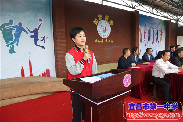 在裁判员代表谭力鑫老师、运动员代表乐靓同学先后发言后,我校校长付全新宣布运动会开幕。随后,同学们、运动员、裁判员各就各位,立刻投入到精彩的比赛中。