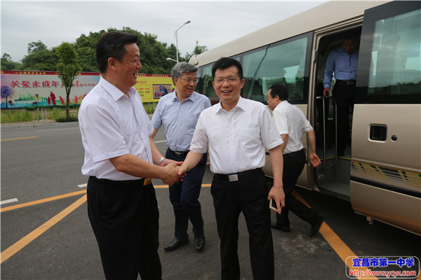 5月28日上午8:30,湖北省教育厅党组书记厅长陶宏、省教育厅二级巡视员何爱军等一行领导来到他们此次宜昌视察的第一站——宜昌一中新校区调研。市政府副秘书长叶爱华、市教育局党组书记局长覃照、市教育局党组副书记市委高校工委专职副书记翟秀刚等领导陪同,我校校长付全新代表学校热情接待并汇报工作。