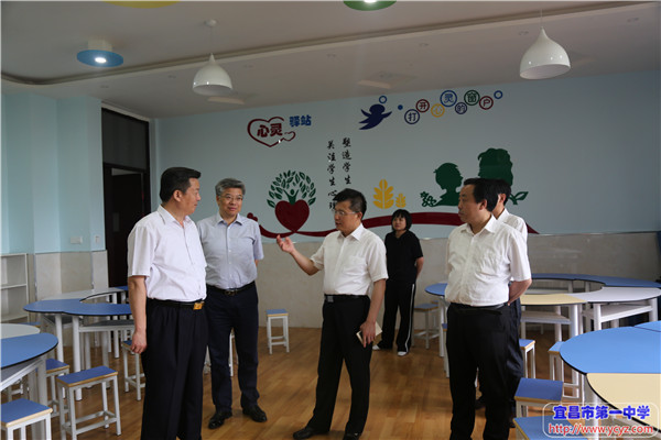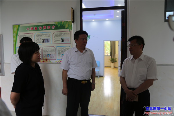 陶厅长还特别走进心理健康教室,了解我校心理健康课程的相关情况,高度评价了一中在学生心理健康、生涯教育方面做出的实践,并特别强调要重视学生心理健康与未来发展。在学校学生成长发展指导中心,陶厅长与我校心理健康、生涯规划专业教师亲切交流,详细询问我校心理健康课和生涯规划课的开课情况。来到学校各个学科教室,陶厅长还对学科教室建设及使用情况作了详细了解。