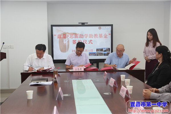 6月1日上午,在宜昌一中新校区墨池书院隆重举行了“鑫鼎·思源助学助教基金”签约仪式。