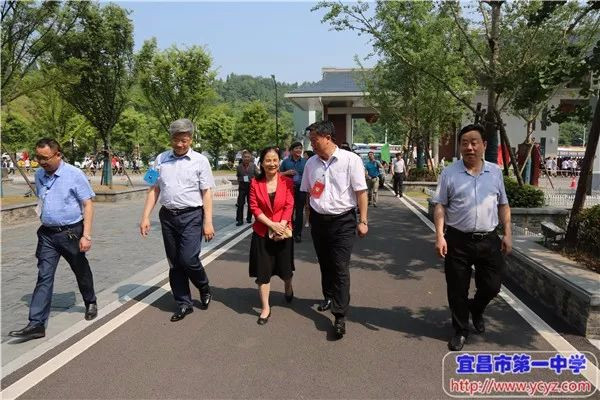 市委常委副市长刘伟玲(左三)巡视宜昌一中考点
