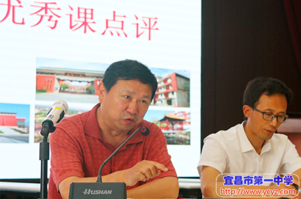 最后,在点评环节中,我校党委书记陈鹏老师向来自兄弟学校的老师和参赛选手表达了诚挚的欢迎和由衷的感谢。接着,来自各县市(区)和城区的8位评委分别做了点评,让观课老师对每节课的特色和亮点留下了深刻的印象。接着,湖北省中语会副秘书长、宜昌市教科院副院长、高中语文教研员李伟杰院长进行了精彩而又独到的总结,强调教师研读并教授国学经典,有助于学生了解传统文化,培育民族精神,吸取古人无穷的智慧,语文教师必须加以重视。李院长及其他评委的点评为我市语文教育的改革指明了方向,将对优化宜昌高中语文课堂教学、促进教师队伍专业化发展、不断提高教学质量起推动作用。