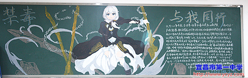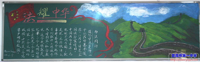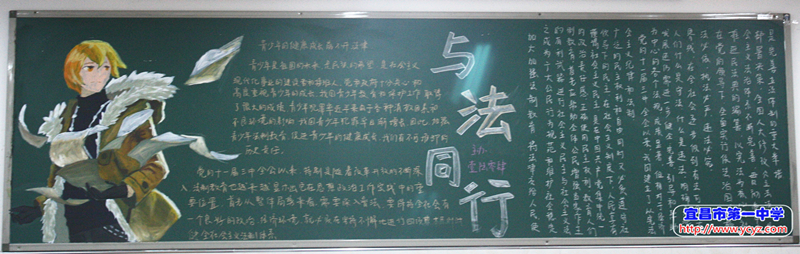 六月是本校法制教育月,同时6月26日也是国际禁毒日。为了牢固树立法制观念,增强法律意识;提高同学们对毒品的警惕意识,本校开展了以“与法同行”和“远离毒品” 为主题的黑板报活动。同学们通过运用水粉,书法,粉笔画等富有特色的表现手法,在良好的审美与美术功底的基础上充分展现了“法”与“毒”的相关知识,很好地向同学们进行了宣传。