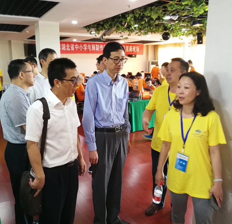 湖北省教育厅副厅长黄国斌(中)、省电教馆馆长邹德智(左二)亲临现场视导