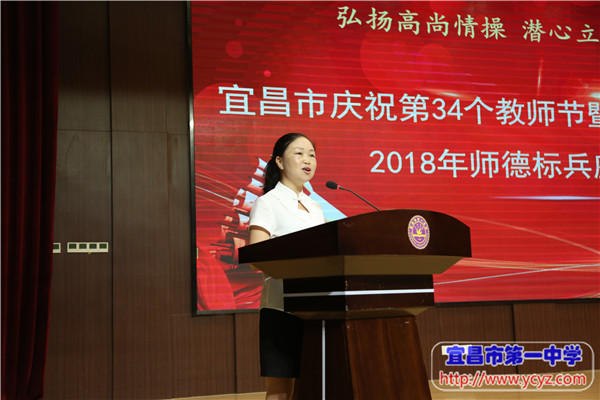 市委常委、副市长刘伟玲宣读了2018年度宜昌市“十佳师德标兵”和“师德标兵”名单