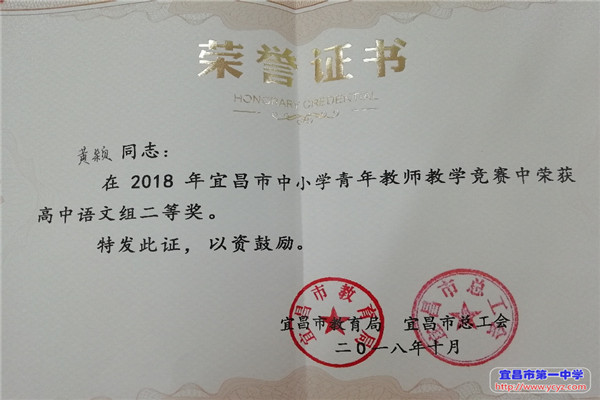 10月11日,2018年全市中小学青年教师教学竞赛暨青年教师发展论坛在市外国语高中圆满落幕,93名选手经过一天半紧张激烈的决赛,最后评出宜昌市青年教学能手6名,一等奖7名、二等奖18名、三等奖30名,突出贡献奖1个,竞赛优秀组织奖14个。我校李智伟、杜艳丽老师获评宜昌市青年教学能手称号,贺飙老师获高中物理组一等奖,黄颖老师获高中语文组二等奖,据了解,此次成绩也成为所有参赛学校中的最好成绩,同时,我校也荣获此次大赛优秀组织奖。