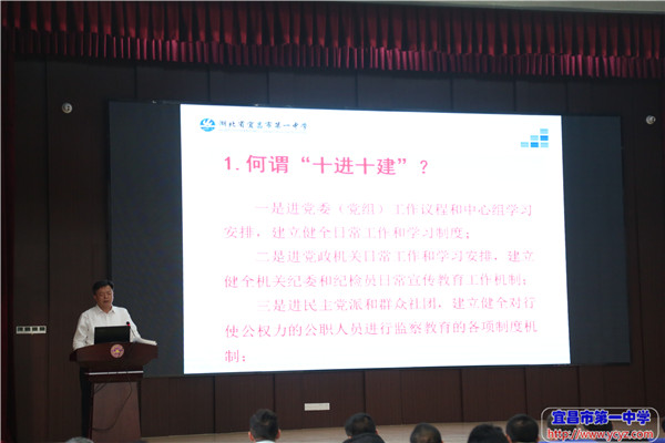 我校组织全体教职工开展“十进十建”知识学习大会 2018-10-12 18:13:57 10月12日,我校组织全体教职工开展“十进十建”知识学习大会。会上,学校校长付全新结合“十进十建”工作,面向全体党员干部、教职员工作了题为《认真学习党纪和国家监察法,做积极参加“十进十建”工作的好干部好老师》专题讲座。他在讲座中详细解释了“十进十建”的概念及内涵,强调了其工作的意义和重要性,并结合我校关于“十进十建”相关工作,作了具体说明和要求。 付校长作《认真学习党纪和国家监察法,做积极参加“十进十建”工作的好干部好老师》专题报告 付校长详细解释"十进十建"内涵 全体教职工参与学习