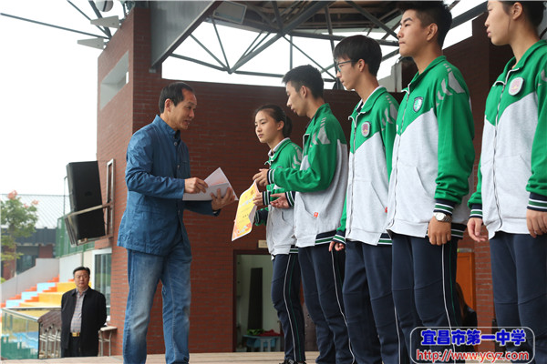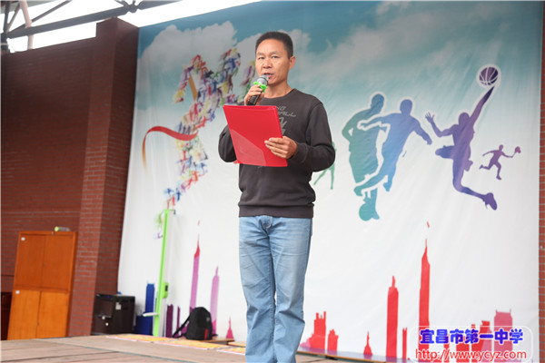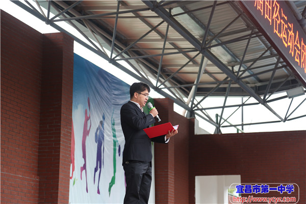 校长付全新宣布宜昌市第一中学第22届体育艺术节暨65届田径运动会胜利闭幕