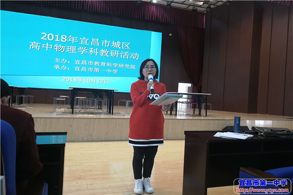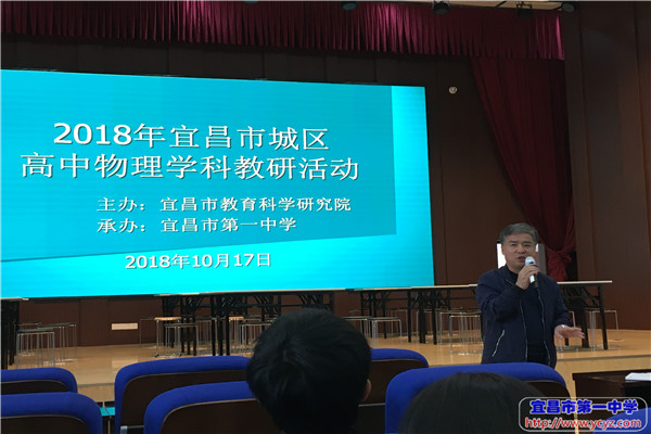 10月17日,由宜昌市教育科学研究院主办,宜昌一中承办的“2018年宜昌市城区高中物理教研活动”在我校墨池书院报告厅隆重举行,物理教研员郑慧平老师组织宜昌城区各高中学校的100多名物理教师齐聚一堂,为高一年级新高考探索方向,为高三年级一轮复习备考研讨科学方法。