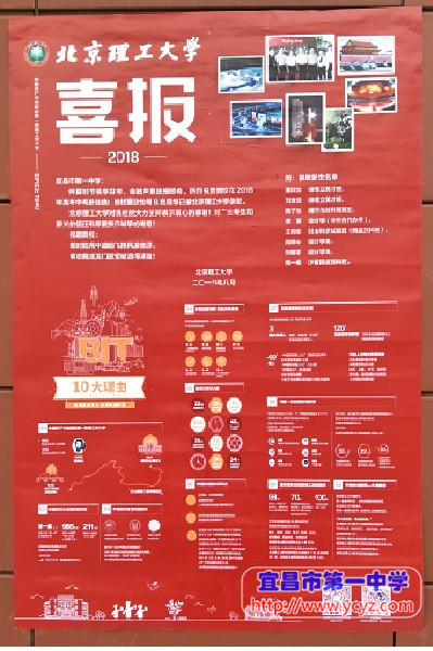 近日,我校收到来自北京理工大学的喜报。喜报称我校董欣怡8位同学考入北京理工徐特立英才班、理学与材料精英班等,特此报喜。