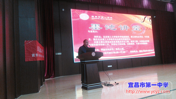10月22日下午,北京理工大学计算机科学与技术学院闫教授做客“墨池讲堂”,为我校高二年级四百多名优秀学子带来题为“大数据时代的网络空间安全”的精彩学术讲座。讲座在墨池书院学术报告厅举行,副校长闫明主持。