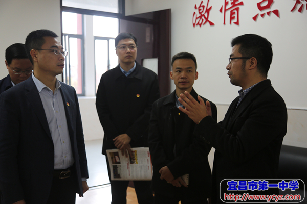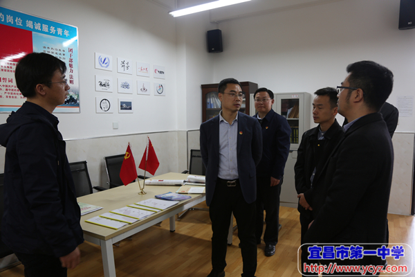 在团委活动室,王书记等长时间驻足,查看了我校共青团改革相关成果,具体询问了我校青年大学习及共青团改革和学联学生会改革情况,对我校青马工程及习近平新时代中国特色社会主义思想学习会等活动的开展表示了肯定,在谈到我校社团工作时,王书记等对我校模联社团活动给予了高度评价,特别是知道我校已成功举办五届宜昌市中学生模拟联合国大会时,对我校在推动宜昌地区模联活动的开展所作出的努力给予了充分肯定。王书记勉励我校团委在当前共青团改革大背景下,抢抓机遇,紧紧依靠学校党委和上级团组织,抓实共青团改革工作,突出共青团工作的政治性、先进性和群众性,在全团抓学校的改革契机下,落实好团教协作,充分利用资源,聚焦主责主业,不断将我校共青团工作推向新的高度。