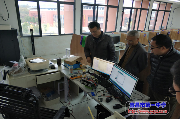11月22日,市教育信息技术中心主任张旭东一行4人来我校进行2018年度全市教育技术工作考评,市教科院向立政主任陪同考查,我校副校长闫明代表学校热情接待。