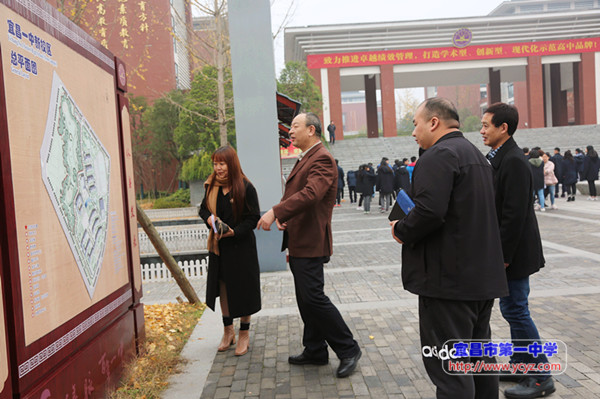 李大海副校长、潘琴主任陪同劲牌慈善基金会刘秘书长(左二)、市慈善总会余会长(左三)参观校园