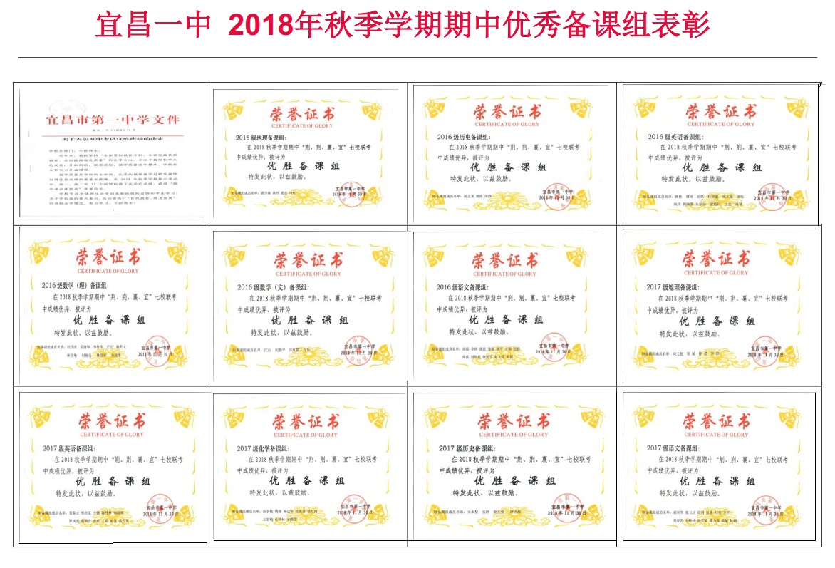2018年11月高三七校联考获奖优胜班级及班主任