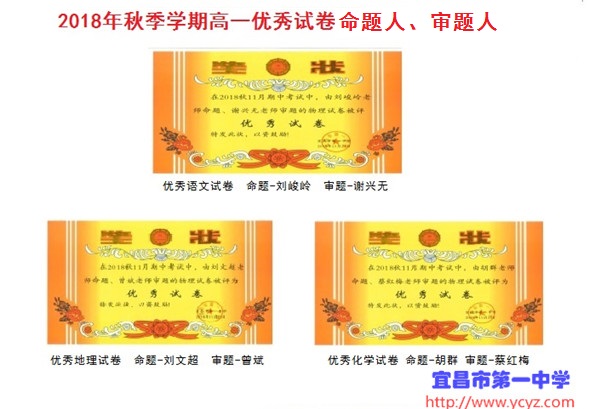 优秀试卷获奖证书