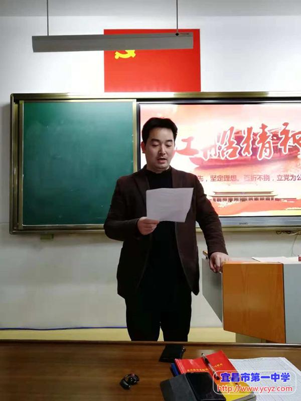 12月5日下午,中共宜昌市第一中学第二党支部在高二教学楼(闻喜楼)一楼党员活动室,举行了十二月支部主题党日活动。本次党日活动由支部书记蔡利鹏同志主持,学校党委书记陈鹏同志及支部全体党员参加了此次活动。