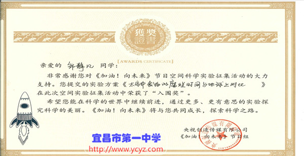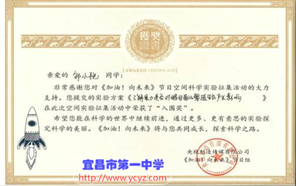 近日获悉,我校生物组奥赛教练丁龙宇老师与四位同学在中央广播电视总台央视综合频道面向全国中小学生开展的卫星搭载空间科学实验方案征集活动《加油!向未来》中分别荣获“优秀指导教师奖”和“入围奖”。
