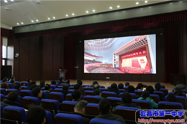 12月18日上午10时,学校全体教师集中在墨池书院二楼报告厅认真学习观看《庆祝改革开放40周年大会》的在线直播,同大会人员一起回顾改革开放40年历程,致敬改革开放历程中每一位改革先锋者。