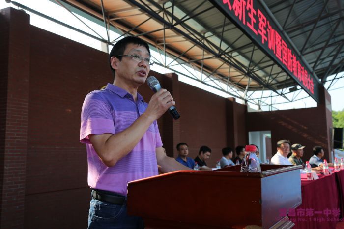 在庄严的升旗仪式结束后,副校长李大海致辞,他在致辞中对2020级新生的到来表示热烈的欢迎,对此次来校参加2020级高一新生军训的全体教官表示最衷心的感谢,同时他对参训学员提出两点要求:一是明确军训目的,二是学习军人作风,他亲切寄语全体同学以高昂的激情和顽强的毅力,高质量通过高中学习生活的第一场考验。
