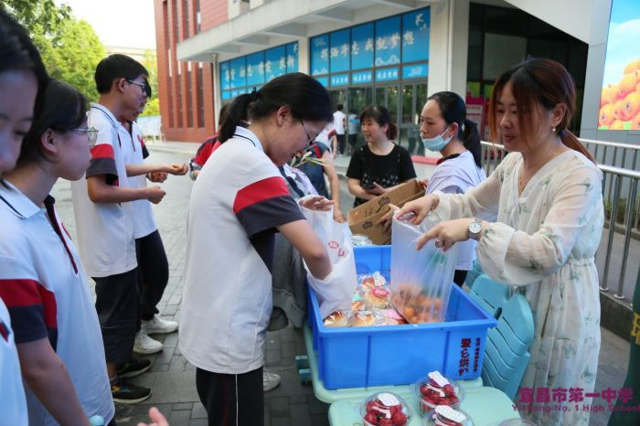 在状元桥下还贴心的设置了成果兑换区,在每一盒胜利果上粘贴了对高三学子的祝福和鼓励