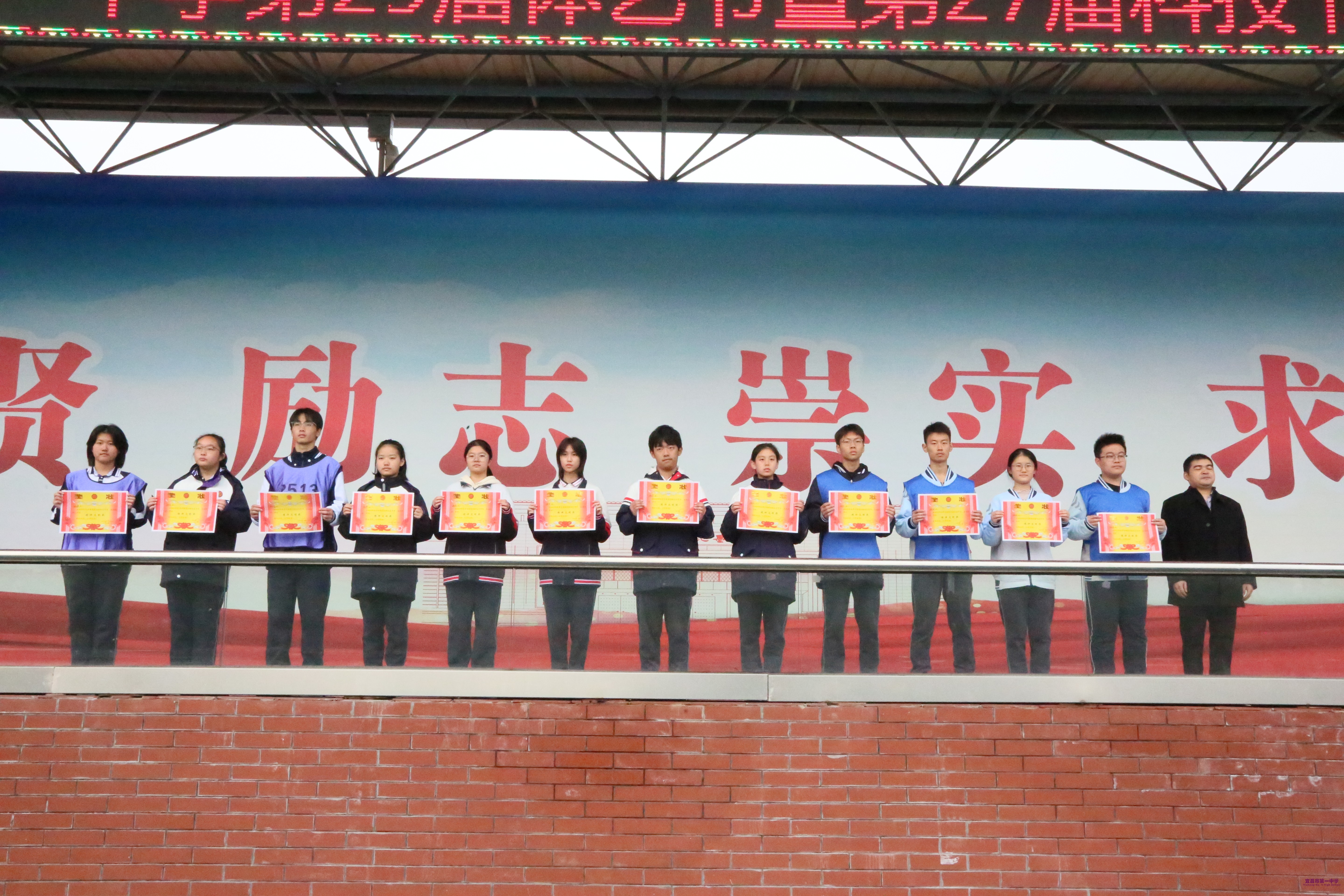 闭幕式上,本届总裁判长张宏远宣布了团体总分前八名班级名单;副校长黄文坚宣读了第29届体艺节“优秀组织奖”“精神文明奖”评选结果;副校长余信欢公布了第27届科技节优胜集体。学校党委书记谭小红、校长蔡利鹏分别为获奖班级颁奖。