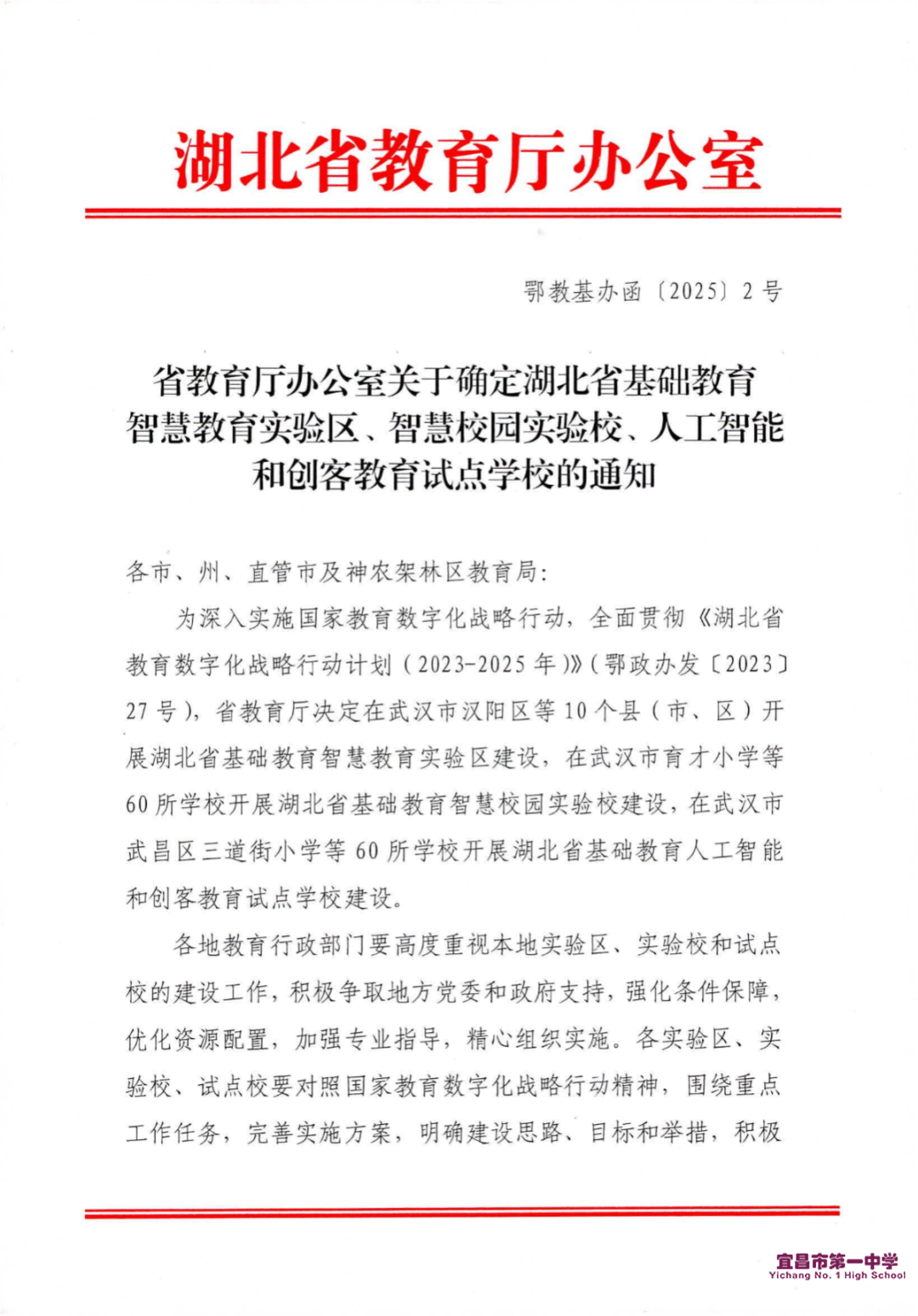 5月,学校获评第三届“全国文明校园”。以“六美校园”建设为抓手,将文明素养培育融入教育教学全过程,将文明基因融入办学血脉,典型经验在“文明湖北”“全国文明校园巡礼”专栏刊发,并在全省作典型交流。此外,本年度当选湖北省生涯教育研究会高中分会副会长单位、获评2025年“湖北省基础教育人工智能和创客教育试点学校”、宜昌市“湖北省普通高中教学改革实验先行校”、宜昌市“生动课堂”建设大赛“优秀学校”、宜昌市中小学阅读课程建设“领航学校”等荣誉。学校深化办学特色,办学理念与实践成果获各级高度认可。