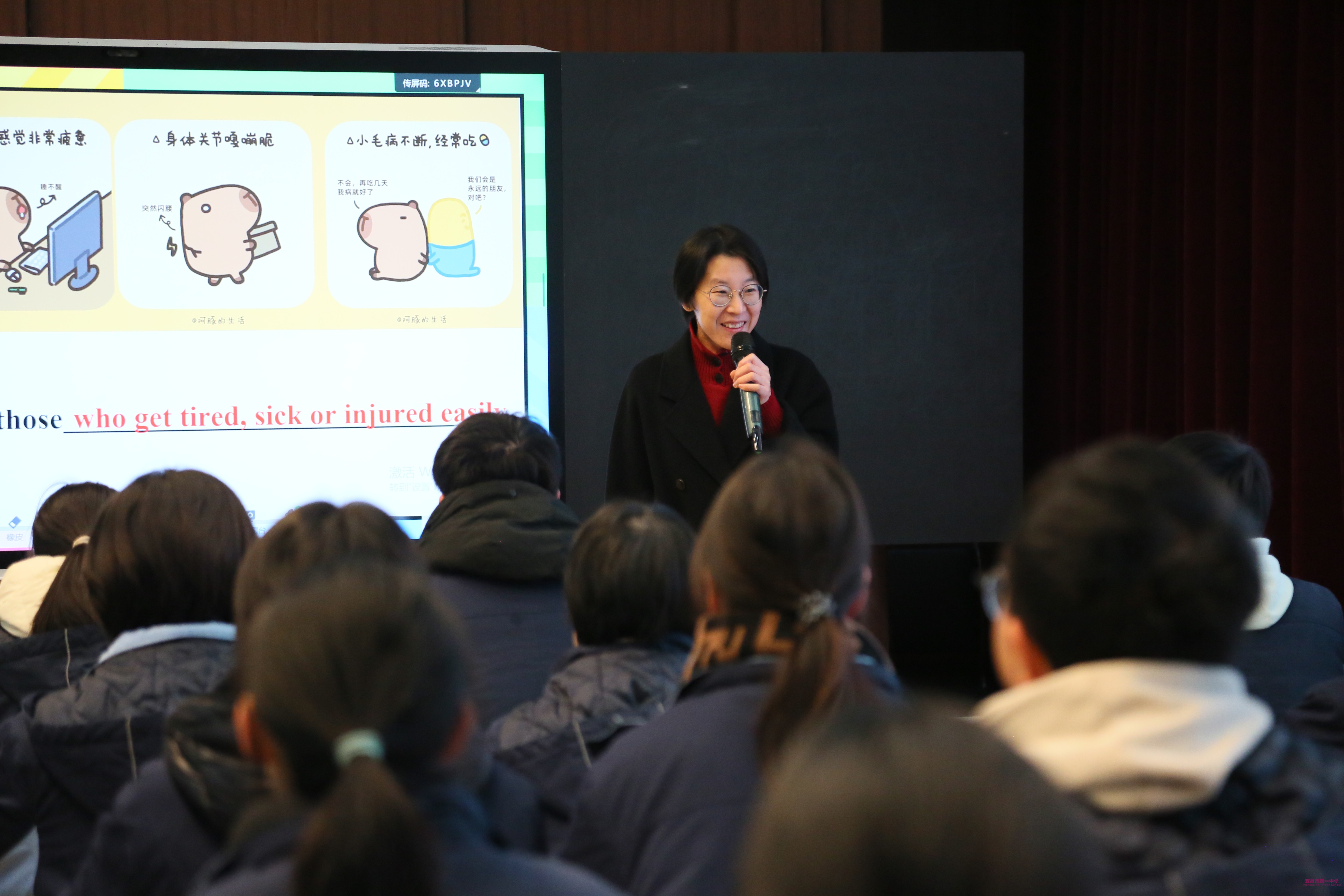 各学科展示的复习研讨课,深度践行了我校正在推进的“生动课堂”三类五步教学法,特别是在复习课型中,突出“体系建构、重点突破、分层练习、答疑解惑、总结反思”的核心环节,为构建思维型课堂提供了鲜活范例。数学学科以“三角函数值域与最值”为核心,张有友老师通过递进式问题链设计,引导学生多路径探究,实现了复习课“重点突破”与“思维深化”的目标,有效提升了学生的逻辑推理与数学建模能力;英语学科围绕“健康生活方式”主题,吴巧玲老师创设“健康卫士”角色任务,在主题意义引领下融合语言知识复现与表达实践,体现了复习课“体系建构”的情境化与“应用拓展”的交际性,强化了语言综合运用能力;生物学科以“糖尿病”为微专题,王苗郁老师采用“识病—治病—防病”的探究主线,引导学生开展案例分析并设计健康方案,贯穿了“答疑解惑”的探究性与“总结反思”的社会责任,提升了科学探究素养;地理学科聚焦“湖泊时空演变”,双珏老师引导学生运用综合思维与区域认知,分析自然过程与人文活动的互动关系,在“分层练习”中融入思维阶梯,体现了地理学科独特的育人价值;化学学科谭玉园老师从“共价键极性”这一核心概念切入,重构有机反应复习脉络,帮助学生建立“结构—性质—反应”的认知模型,贯穿了“知识建构”的系统性与“迁移应用”的思维性。