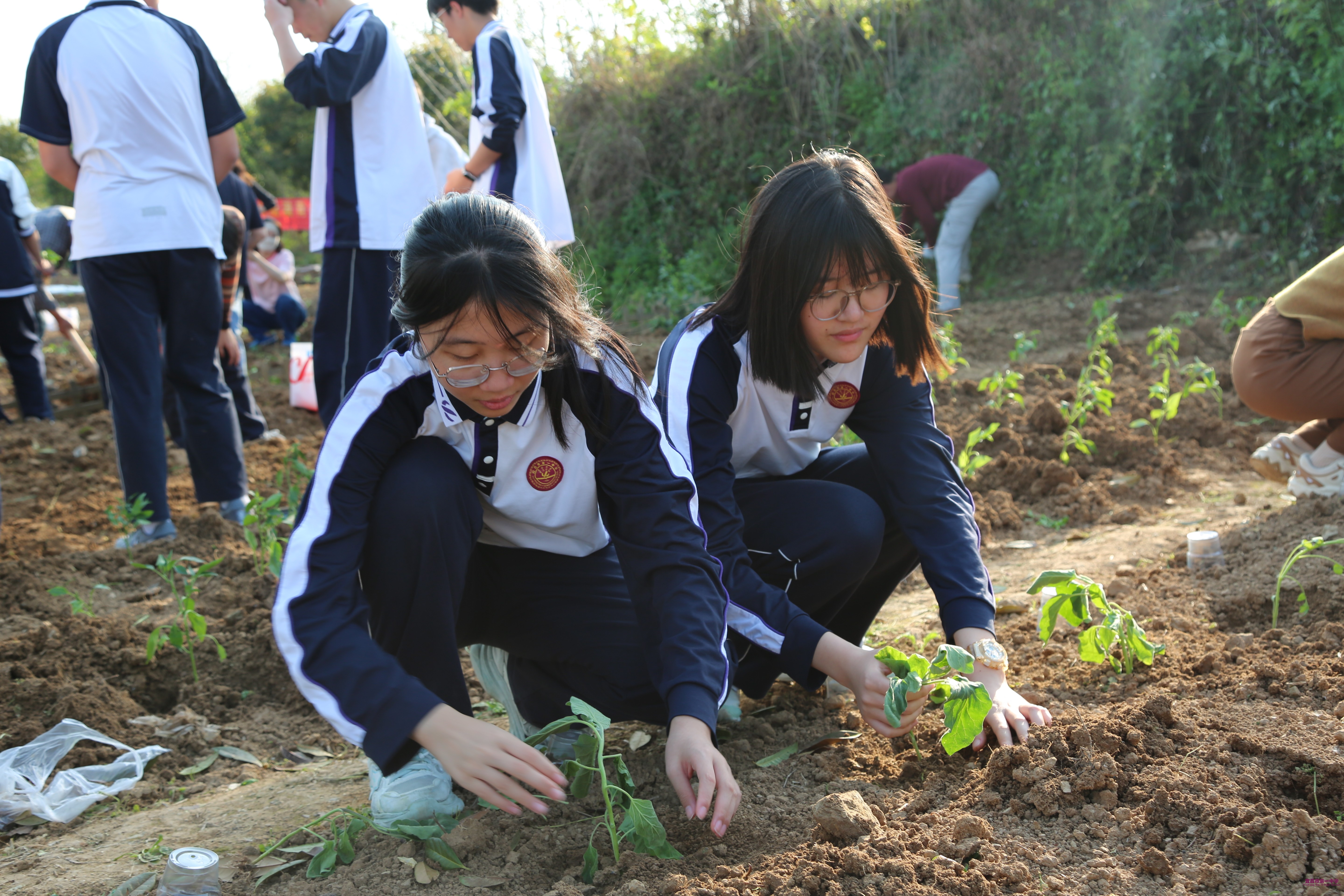 我校劳动教育基地始终坚持学科融合、实践育人:语文组深度融合诗词文化,引导同学们在耕耘中品读“春种一粒粟,秋收万颗子”“晨兴理荒秽,带月荷锄归”等经典诗作,将农耕实践与诗词赏析相结合,让劳动之美与文字之韵相得益彰。