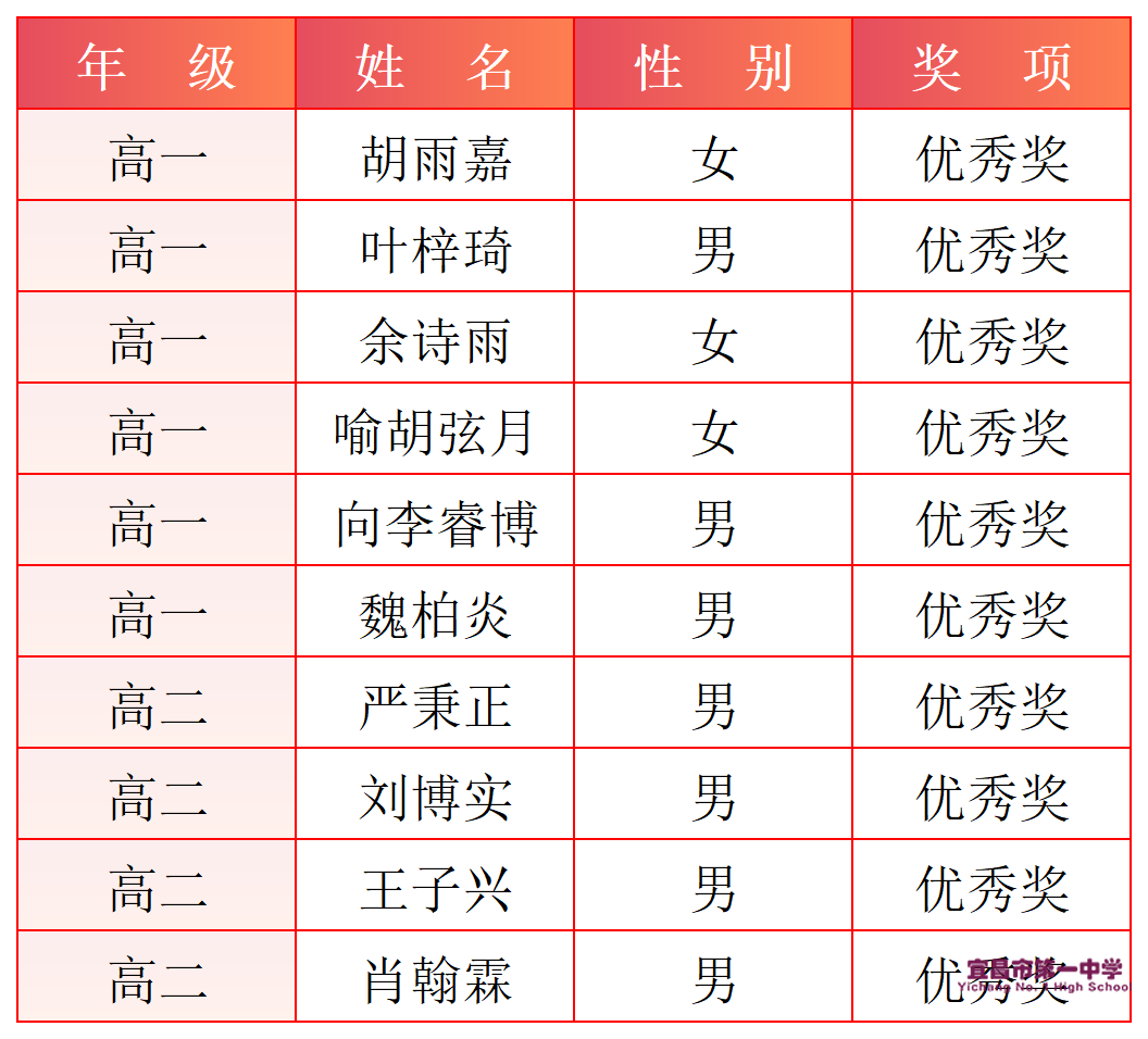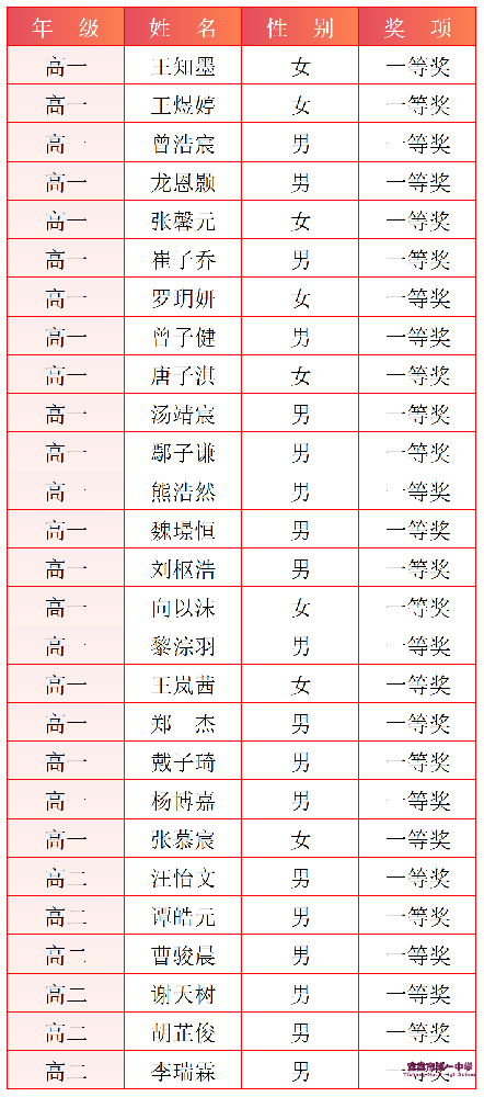 一等奖获奖名单
